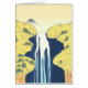 Asian Waterfall, beautiful hand drawn vintage style waterfall art.