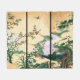 Gorgeous vintage fine Japanese Screen Art painting of Mourning Doves and other Birds with pale Pink, Red Rose and Wisteria Flowers with Clouds and a waterfall/stream is on this Fleece Blanket. Image is public domain due to expired copyright.
