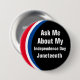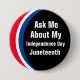 Red white and blue, striped ask me about my Independence Day Juneteenth button. Start a conversation about one of the newest nationally recognized federal holidays as of June 2021. Design by Ms_Jade. © 2021 Ms_Jade