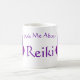 Ask Me About Reiki purple rose coffee or tea mug. You can change or add any text you like, as well as change font size, colour, and style. Visit Smilin' Eyes Treasures for more Reiki items.