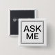 Simple budget ask me pin back buttons in classic black and white designed as a template you can customize online by simply replacing the text or leaving it as-is to suit your special event, seminar, convention, or charitable events.