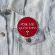 Bulk editable business promotional Ask Me pin back button pins in a bold yet simple design that says Ask Me Questions designed to be used at your next trade show, convention, or special events as a way to prompt customers or prospective clients to ask questions. These have been used at marketing trade shows promoting products, services, or charitable events created in classic black and white.