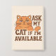 An orange cat with a grumpy expression accompanied by the phrase "Ask my cat if I'm available" in fun and striking lettering. Perfect for cat lovers who know that their felines always have the final word. Ideal for those who love prints with sarcastic humour and a relaxed style.