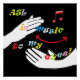 ASL – American Sign Language – is the most beautiful and graphic language on the earth. Concepts are portrayed in the air, the hands creating meaning like a painter uses colour to evoke feelings. Just as we hear a rise and fall in a melody line, the essence of music is captured in the pulsating movement of signs set to music. There is nothing more gratifying. In this painting, one hand sweeps backward and then forward near the palm of the opposite hand and within the curve of the other arm – much like a choir or orchestra leader beats out the music that is played – thus artistically portraying the sign for “music.” Music for the eyes.
