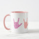Show some love with this mug featuring ASL (American Sign Language) "I love you" signs in four cute and colourful patterns.