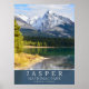 Experience the excitement of nature and Canada's beautiful national parks, especially Jasper National Park. Jasper National Park is located in the province of Alberta, Canada. It is the northernmost park in the Rocky Mountains. The park is made up of glaciers, lakes, waterfalls, and mountains. This design features a photo of a park landscape and is ideal for nature lovers and collectors of Canada's national parks.