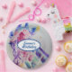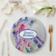 Assiette de fête d'anniversaire pour garçon avec girafe et animaux de zoo, avec un nom entièrement personnalisable. Conçue à partir de mes aquarelles originales.