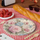 Assiette en papier à fleurs rose bleu