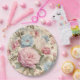 Belle assiette en papier à fleurs rose bleu