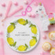 Cette assiette en papier pour baby shower mignonne et élégante présente un fond blanc avec une couronne de citrons et de feuilles vertes. Changez la couleur de fond et personnalisez-la selon vos besoins. Vous pouvez trouver des produits assortis dans ma boutique.