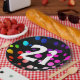 Assiettes En Carton 21e anniversaire - Points arc-en-ciel sur noir