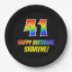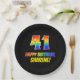 Cette plaque de papier joyeuse, amusante et colorée sur le thème de l'anniversaire comporte un grand numéro "41" et le message "HAPPY BANTHDAY", tous deux avec un dégradé de arc-en-ciel inspiré colorant motif, ainsi qu'un nom personnalisé jaune gras. L'arrière - plan est noir de couleur. Des plaques de papier sur le thème de l’anniversaire comme celle-ci peuvent être amusantes à utiliser lors d’une fête organisée pour célébrer le 41e anniversaire de quelqu’un. [~Z0000488]