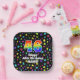 This exciting and cheerful birthday themed paper plate design features a large number “46” with a rainbow spectrum gradient inspired pattern, along with the message “Happy 46th Birthday,”, and a custom name. The background features a multicolored star field inspired pattern. Birthday themed paper plates like this might be a fun way to celebrate somebody’s forty sixth birthday. [~Z0000582]