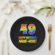Cette conception amusante, joyeuse et colorée de plaque de papier d'anniversaire comporte un grand nombre de "49" et le message "HAPPY BANTHDAY", tous deux ayant un dégradé de arc-en-ciel inspiré colorant motif, ainsi qu'un nom personnalisé jaune audacieux. L'arrière - plan est noir de couleur. Des plaques de papier personnalisées et amusantes comme celle-ci pourraient être utilisées lors d’une célébration d’anniversaire en l’honneur du 49e anniversaire de quelqu’un. [~Z0000488]