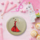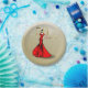 Illustration de mode dessinée à la main d'une élégante dame dans une élégante robe rouge du soir. arrière - plan doré à la parties scintillant pétillante. Les mots "50" et "fabuleux" sont écrits en or glamour, la lettre "&" est écrite dans le même rouge intense que la robe. Illustration et dessin de © janin.f