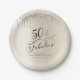 Élégante et chic plaques personnalisées de 50ème anniversaire de fête. "50 & Fabulous" est écrit en écriture stylisée contre un arrière - plan de fausse feuille d'or champagne, avec de la fausse parties scintillant d'or coulant du haut. Vous pouvez personnaliser avec son nom et la date de la fête.