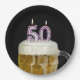 Lit bougies d'anniversaire en tasse de bière sur le noir pour 50e anniversaire.