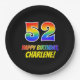 Cette plaque de papier colorée, amusante et joyeuse sur le thème de l'anniversaire comporte un grand nombre de "52" et le message "HAPPY BANTHDAY", tous deux ayant un dégradé arc-en-ciel inspiré colorant motif, ainsi qu'un nom jaune audacieux modifiable. L'arrière - plan est noir de couleur. Des plaques de papier personnalisées et amusantes comme celle-ci pourraient être utilisées lors d’une fête d’anniversaire pour célébrer le cinquantenaire de quelqu’un. [~Z0000488]