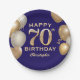 Assiettes En Carton 70e Anniversaire Marine Bleu et Ballons d'or