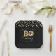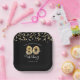 Plaques de papier personnalisées 80e anniversaire modernes et festives en noir et or avec le titre 80 ANS DANS LA FABRICATION, typographie de script, numéros de ballon d'or faux métallique, banderoles d'or et confettis et lumières blanches avec votre texte personnalisé dans votre choix de couleur arrière - plan (montré en noir). ASSISTANCE : Pour obtenir de l'aide sur la modification ou la personnalisation de la conception, le changement de couleur, le transfert de la conception vers un autre produit ou si vous souhaitez coordonner des éléments, contactez le concepteur AVANT de commander par Zazzle Conversation ou par courriel makeitaboutyoustore@gmail.com.