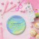 Cette plaque en papier présente un nouveau design de célébration pour bébé avec un tourbillon coloré de violet, pêche, vert et bleu. Remplissez les champs du modèle d'informations personnelles, supprimez le texte et/ou cliquez sur personnaliser pour sélectionner une couleur, une taille et un style de police de votre choix.