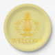 L'ananas est un symbole de l'hospitalité depuis des siècles. Silhouette d'ananas doré et graphismes de couronne avec texte "Welcome"
