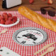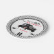 Ce plat de fête d'anniversaire d'amusement pour lui caractéristiques une voiture ancienne vintage classique en noir et rouge sur un arrière - plan rayé. Le défaut est 60 années, mais vous pouvez facilement customiser avec son propres nom et âge. Célébrez votre homme avec une fête d'anniversaire classique ! Des articles coordonnés pour sa fête d'anniversaire peuvent être trouvés dans ma collection non vieille mais classique de fête d'anniversaire dans mon magasin de Zazzle :