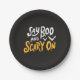 Drôle Halloween Plaque de papier de fête avec la citation "Say Boo and Scary On". Disponible ici : http://www.zazzle.com/selectpartysupplies