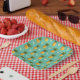 Assiettes En Carton Ananas Lumineux Sur Motif Géométrique