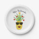 Cette amusante plaque en papier Mele Kalikimaka présente un ananas jaune décoré comme un sapin de Noël et portant des lunettes de soleil ! Le texte est personnalisable. Aquarelle originale © Michele Davies.