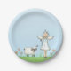 Assiettes En Carton Ange de fille et agneau, bleu, religieux