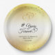 Célébrez n'importe quel anniversaire de mariage avec ces plaques de papier personnalisées en or, noir et blanc modifiables avec un design élégant de typographie de script de calligraphie de # YEARS INTO FOREVER accentué avec des coeurs dorés liés à l'entrelacement des initiales monogrammes et des confettis d'or contre un arrière - plan en or métallique faux brossé. Le titre de la conception est modifiable pour modifier l'utilisation # pour n'importe quel anniversaire. Contactez le concepteur via Zazzle Conversation ou makeitaboutyoustore@gmail.com si vous souhaitez modifier ce design, sur un autre produit ou pour coordonner des éléments.