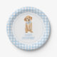 Anniversaire de l'extracteur en or de chiot avec arc bleu et plaid bleu.