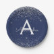Assiettes En Carton Anniversaire Monogramme Pailleté Bleu Marine Argen