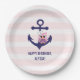 Assiettes En Carton Anniversaire nautique de hibou et de rayures de
