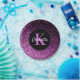 Pour un anniversaire girly et glamour, nuptiale ou baby shower. Dégradé profond violet et rose en faux parties scintillant. Un cadre noir et violet avec espace pour votre nom et lettre monogramme. Le nom est écrit en blanc avec un script de style moderne écrit à la main. Lettre monographique en rose.