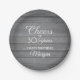 Add an elegent personalized touch to birthday party decorations with these stylish faux grey wood paper plates. Les objets de design sont modernes en script calligraphy editable "Cheers to 30 Years" on a rustic gray wood background. This template is set up for a 30th birthday celebration, but is simple to customize to a different yeor age age. Joyeux anniversaire !