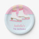 Assortissez cette fête d'anniversaire de patinage de glace avec ces approvisionnements modernes, élégants et girly de partie ! La conception a l'illustration des pieds d'une fille qui porte une paire de patins blancs avec les dentelles et les lames roses de patin. Elle patine sur une piste de patinage de glace qui a le motif de flocons de neige à l'arrière-plan. Grand pour des filles d'anniversaire vieillit des tweens aux ados. Personnalisez avec votre message.