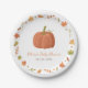 Party les plaques à papier avec l'illustration numérique de peinture d'un citrouille et du feuille d'automne comme frontière. Couleurs d'automne d'orange, de brun, de vert, de jaune et le rouge. Les la plupart adaptées aux baby showers se sont tenues pendant le thanksgiving, automne, période de chute ! Ajoutez votre message de partie.