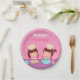 Ceux-ci party des caractéristiques de plaque à papier d'approvisionnements deux chefs mignons de petite fille dans les tabliers et des casquettes de chef. La fille avec l'agrafe de cheveux malaxe la pâte tandis que la fille avec la queue de cheval mélange la pâte. La palette de couleur du rose et du pourpre est girly et bonbon pour une fille d'anniversaire ! Servez votre nourriture de partie de ces plats ! Ajoutez votre message de partie !