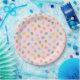 Pastel confetti, mais le rendre peintre. Ce design rose-roux est parsemé de points d'aquarelle à la main dans les tons menthe, lilas, ciel, pêche et jaune soleil - doux, ludique, parfait pour les anniversaires, les baby showers, les pique-niques, les brunchs de Pâques, ou toute célébration printemps-été.