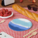 Assiettes En Carton Aquarelle Abstraite moderne tons bleus