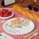 Ces assiettes mariages romantiques inspirées de la chute arborent une aquarelle d'un parc. Des arbres dorés avec des feuilles en chute créent un auvent sur un banc confortable du parc et un lampadaire. Des feuilles colorés sont nichés sous les arbres, créant une scène d'automne parfaite.