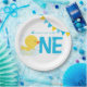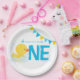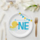 Aquarelle blanche Caoutchouc Oh Quel plaisir d'être un 1er Anniversaire Plaques de papier. Jaune et Bleu