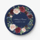 Assiettes En Carton Aquarelle bleu Bourgogne Floral Mariage