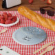 Assiettes En Carton Aquarelle bleu et or moderne Dusty