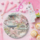 Assiettes En Carton Aquarelle de la pagode asiatique au milieu des fle