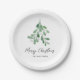 Ces assiettes en papier festif sont décorées de mistletoe vert aquarelle et disent Joyeux Noël dans la typographie stylisée. Facile à personnaliser. Aquarelle originale © Michele Davies.