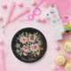 Assiettes En Carton Aquarelle Fleurs roses sur Noir