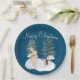 Cette assiette de Noël ou de fête de Noël personnalisée est décorée d'une aquarelle d'hiver chaude et confortable. Deux mignons petits animaux de forêt, un hérisson et un lapin, font du patin à glace parmi les arbres. L'arrière - plan est un bleu royal riche.